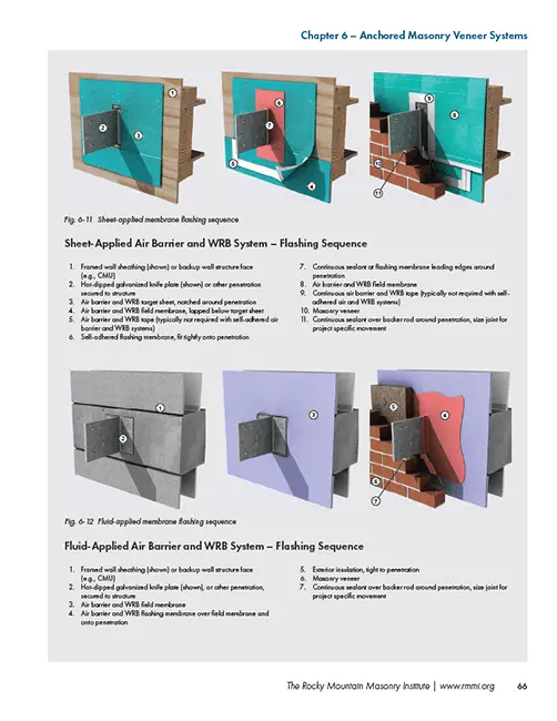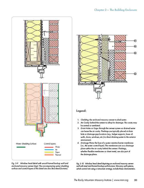 The image-packed design guide uses photos, illustrations, 2D details, 3D cutaway wall sections, checklists, and design tables to educate designers and masonry contractors on concepts such as enclosure detailing, control layer continuity, thermal bridging, and installation sequencing. The guide explains concepts such as water management, air leakage, flashings, structural support and attachment, and thermal performance. Special attention is paid to quality control and quality assurance practices that improve the enclosure performance and the aesthetic design of a masonry-based wall system. It also provides an in-depth discussion of the local governing energy codes and masonry wall system compliance options.